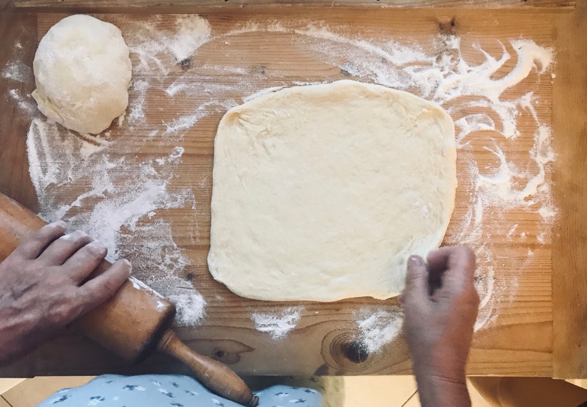 Těsto si rozdělíte na dva bochníky a s každým pracujete stejně.